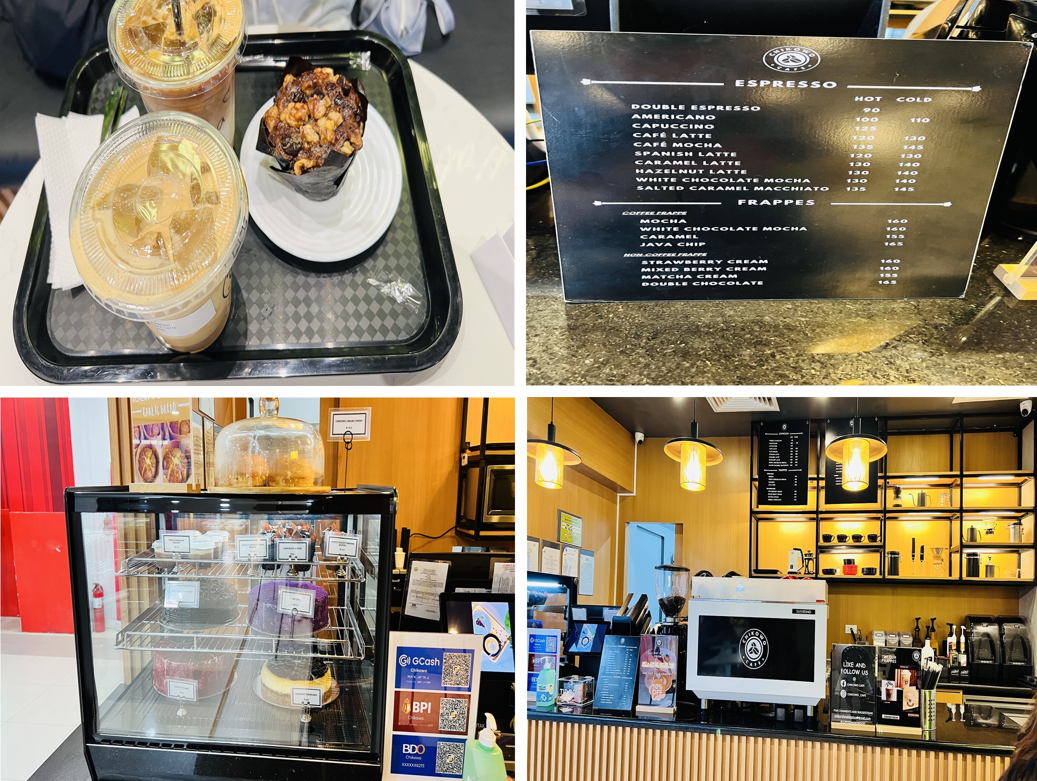 저희는 카페라떼 아이스 cafe latte cold 130페소(3,000원)와 카라멜라떼 아이스 caramel latte cold 140페소(3,300원)그리고 초코라떼 머핀 Chocolate muffin 80페소(1,900원)를 시켜 먹었습니다.