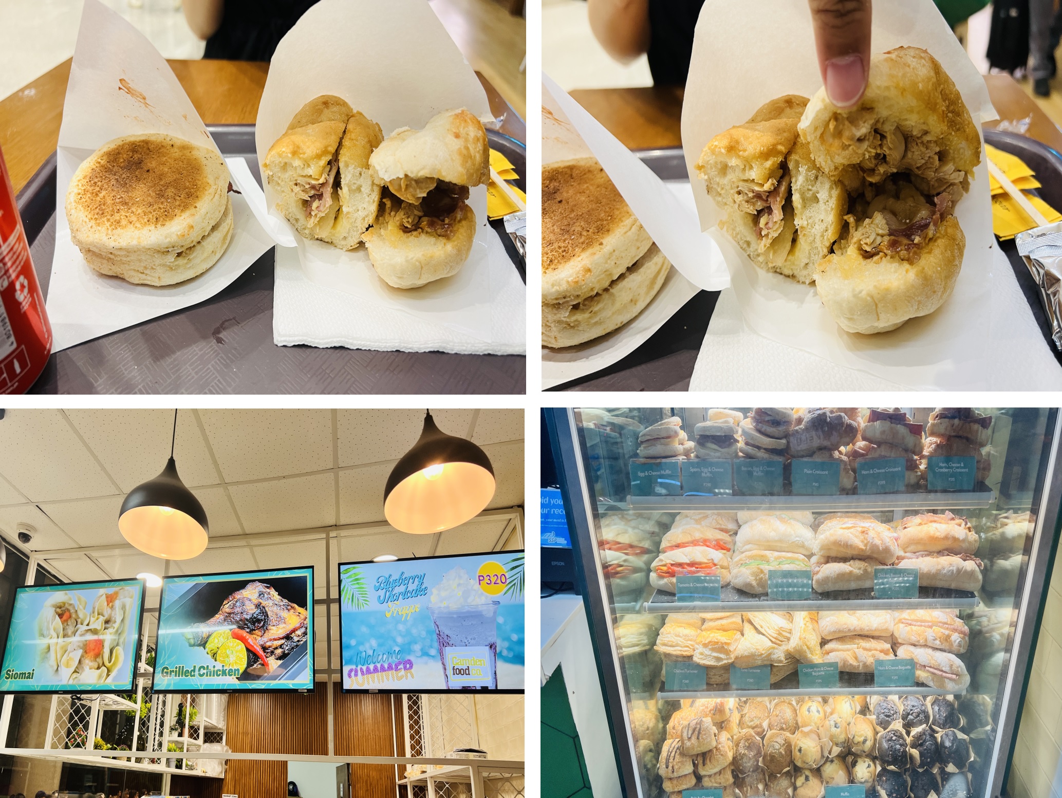 가격은 Bacon egg & Cheese Mufin은 270페소(6,300원)이고, Chicken, Bacon & Cheese Baguette는 325페소(7,500원)이었습니다.
